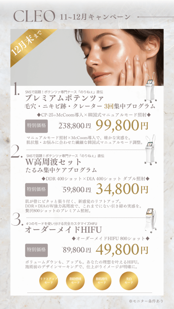 ポテンツァ専門ナースのりねぇ直伝の手技を、関西専属提携院、クレオビューティークリニックで。